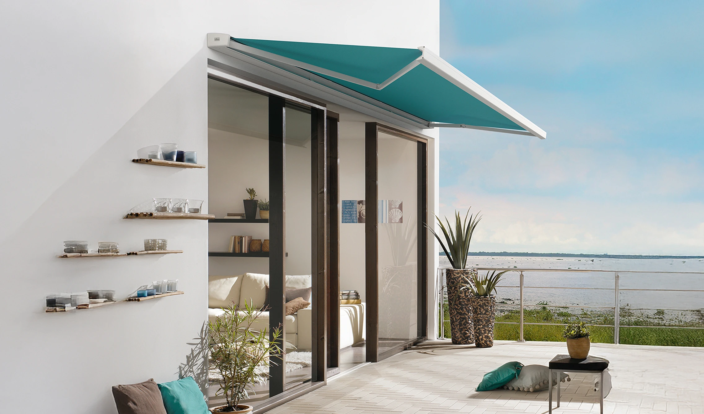 Flache Kassette, hoher Anspruch: Die kompakte Vollkassette fügt sich harmonisch in Außenbereiche ein und schützt das Tuch zuverlässig. Mit hochwertigen Materialien und Optionen wie LED, Wetterautomatik oder Heizstrahler ist sie die elegante Lösung für kleine Flächen ohne Kompromisse.