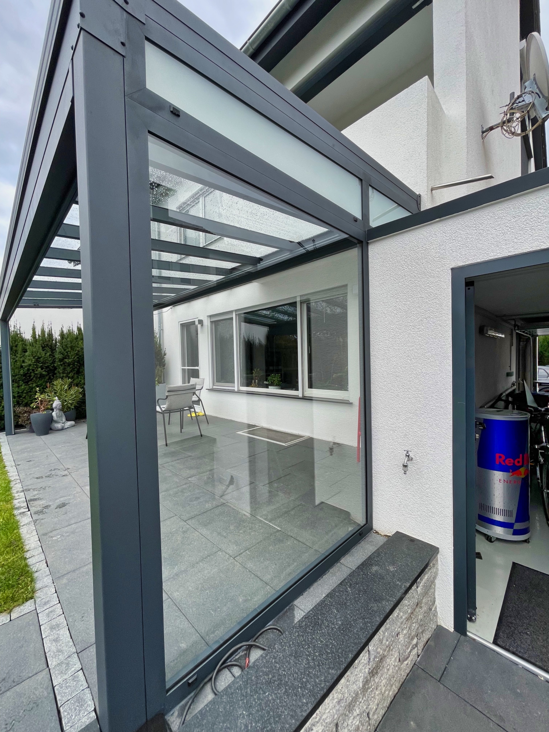 Festverglasungen sind eine stabile und dauerhafte Lösung für Terrassenüberdachungen und Außenbereiche, in denen ein zuverlässiger Wetterschutz gewünscht ist. Die fest montierten Glaselemente schützen effektiv vor Wind, Regen und Zugluft und schaffen gleichzeitig eine helle und freundliche Umgebung mit freiem Blick nach außen. Dank schlanker Aluminiumprofile bleibt die Optik leicht und modern, während die Konstruktion für hohe Stabilität sorgt. Je nach Wunsch stehen verschiedene Glasarten zur Verfügung, beispielsweise Sonnenschutzglas, satiniertes Glas für mehr Privatsphäre oder besonders pflegeleichte Varianten. Festverglasungen lassen sich auch mit Schiebeelementen kombinieren und ermöglichen so Lösungen, bei denen feste und bewegliche Bereiche optimal miteinander verbunden werden.