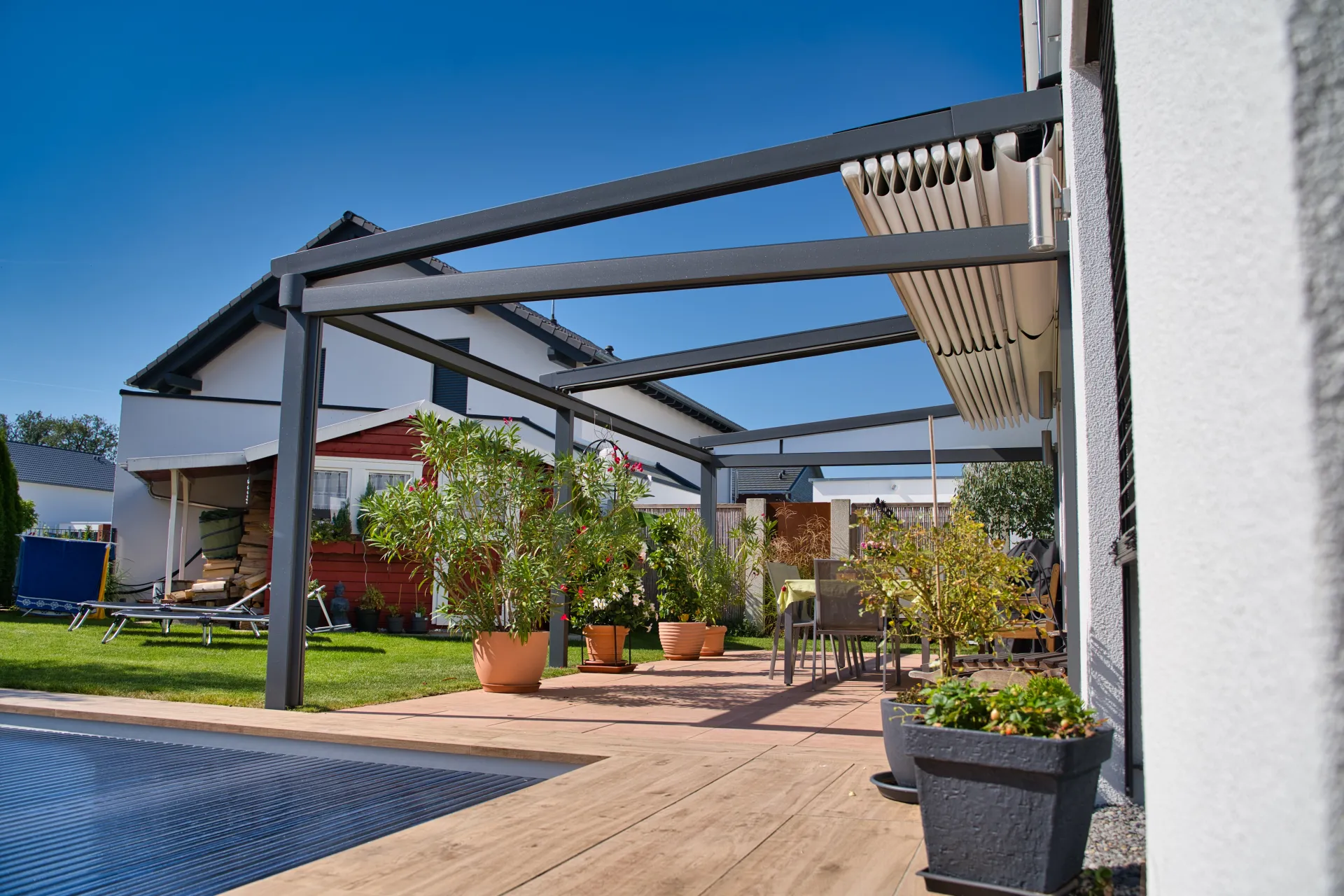 Erleben Sie, wie unsere Pergolamarkise Ihren Außenbereich in eine stilvolle Wohlfühloase verwandelt.