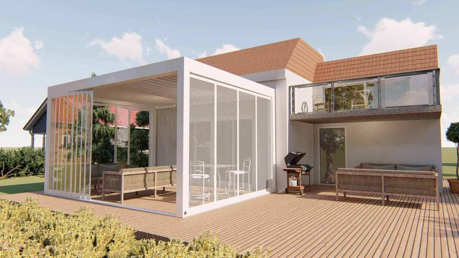 Bei schönem Wetter lassen sich die Glaselemente komplett zur Seite schieben – so genießen Sie Ihr Outdoor-Feeling, wann immer Sie möchten.